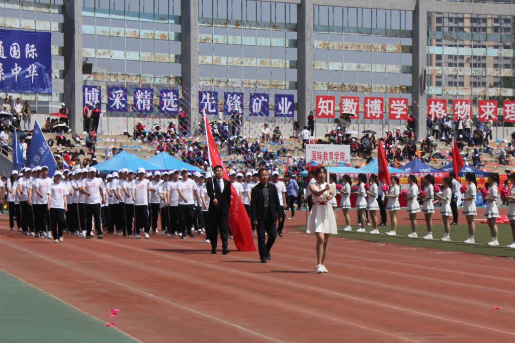 開幕式中,國際教育學院的學生們排著整齊的隊形,大踏步向主席臺走來。同學們個個衣著鮮艷,面帶笑容,昂首闊步,充分的展示出青年特有的朝氣與活力。