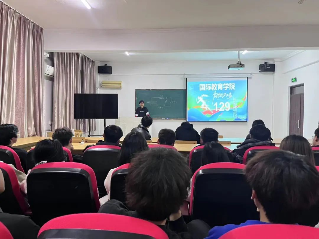 12月5日晚 ,國際教育學院于博遠樓107教室召開了“一二·九”冬季長跑比賽動員大會。國際教育學院輔導員張翀睿,學生會、分團委部分學生骨干及全體參賽運動員參加本次會議。