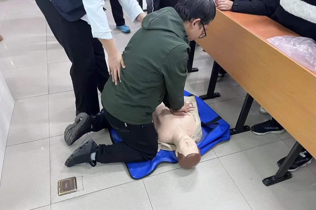 宣講結(jié)束后,同學(xué)們還利用模型假人體驗(yàn)心肺復(fù)蘇操作,加深了大家對(duì)心肺復(fù)蘇的認(rèn)識(shí)與理解。