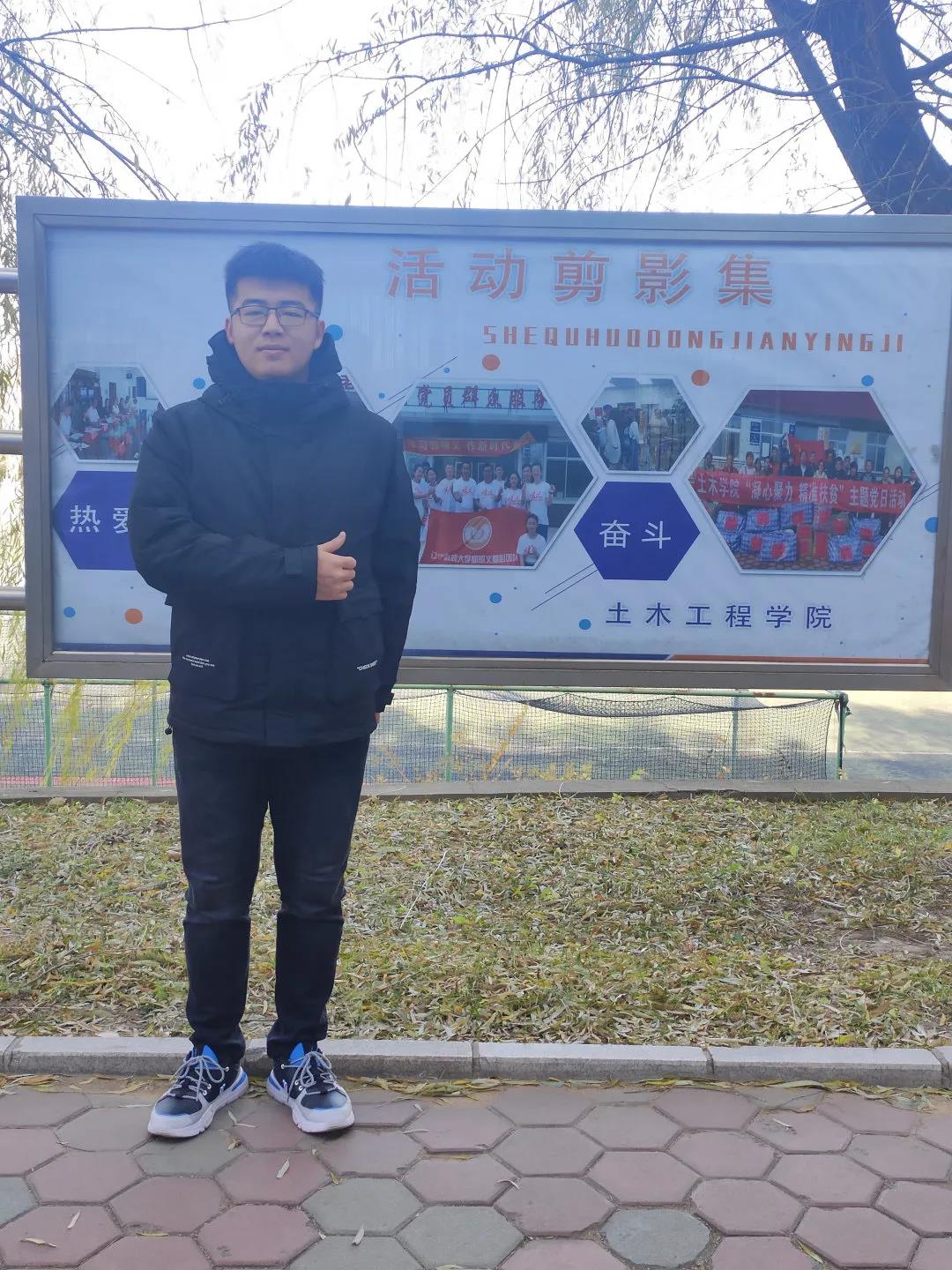 他不僅學習成績不錯,各方面素質都很突出。他喜歡參加各類活動。在兩次校運動會中,他兩次代表學院參加項目,獲得了校運動會“火車跑”第三、第四名的成績。在ERP沙盤模擬大賽中獲得了三等獎,在校結構設計大賽中獲得了優秀獎。在2020年遼寧省“挑戰杯”創業計劃大賽中獲得了校賽特等獎、省賽銅獎。一路上開朗自信,樂于助人,成績優異,工作出色,綜合素質高。“人的一生,沒有最高層次的目標,只有更高層次的追求,人只有不斷向著更高層次目標不懈追求,才會不斷發展、進步。青春只有一次,但求面對碧海蒼天捫心自問時他能驕傲地說:拼過無悔!”一定加倍努力,以自己的實際行動一步一步實現自己的人生價值與社會價值!做一名合格優秀的大學生。