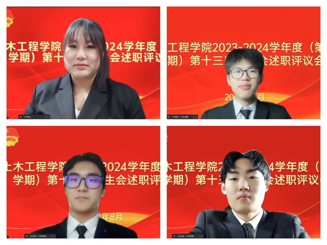 為進一步加強土木工程學院學生會建設,發揮學生會聯系廣大同學的橋梁紐帶作用,推動學生 會組織管理工作科學化、規范化,8月14日,土木工程學院2023-2024學年度(第二學期)第十三屆學生會述職評議會在線上召開。土木工程學院黨委副書記王一、團委副書記李振南以及學生會全體 成員參加評議會。