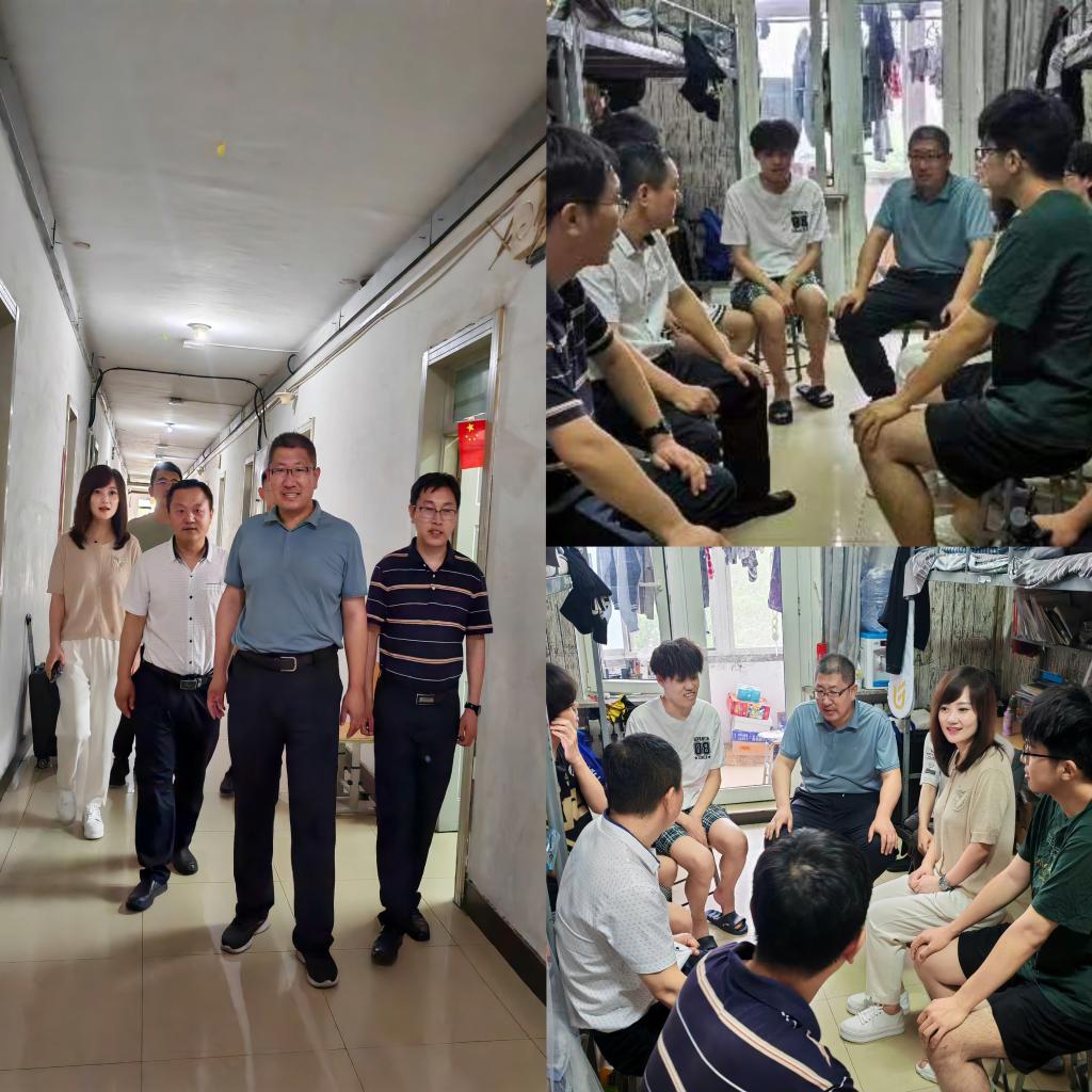 檢查過程中,學院領導老師逐層逐寢走訪并組織各班級班長、寢室長等開展集中座談,傳達學校《關于開展學生宿舍飼養(yǎng)寵物專項排查工作的通知》精神,重點檢查寢室衛(wèi)生、就寢秩序、安全設施及隱患、寵物飼養(yǎng)等情況,同時提醒同學們注意禁止使用違規(guī)用電器、出寢時務必將插排和充電器斷電、不允許在寢室飼養(yǎng)寵物等問題。學生社區(qū)黨員活動室內(nèi),考研同學正在認真復習,各位領導老師來到同學身邊,詢問他們備考情況及對活動室建設的意見建議,鼓勵大家充分把握寶貴時間、全身心備考應戰(zhàn),用不懈努力奠定成長基礎。