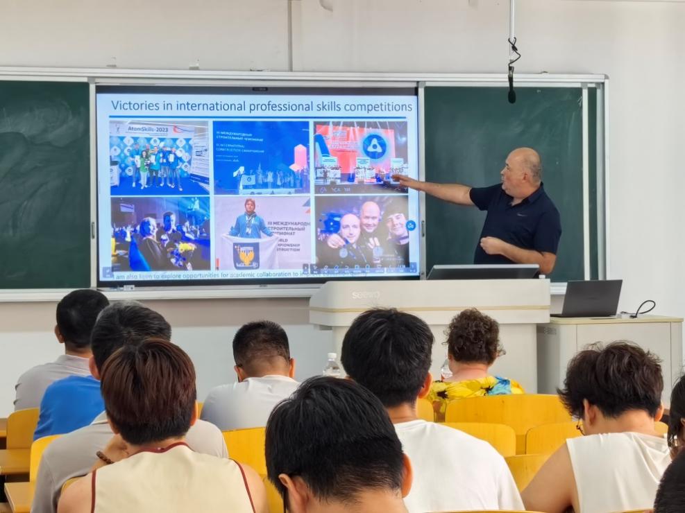 報告結束后,尤里?尤爾金教授參觀了土木智能建造實驗室,就進一步與學院師生展開科研合作、學術交流提出想法與建議。土木相關負責人表示下一步要在國際交流合作處搭建的合作平臺基礎上,積極申請國外各類交流項目、出國深造項目,進一步拓展師生國際視野;加強與國際院校的科研合作,與維亞特卡國立大學在結構抗震加固、新型材料研發、噪聲控制等方面開展科研合作,共同申報國際相關基金項目,共同指導跨國際院校研究生科研寫作;組建攻關團隊,久久為攻,瞄準并力爭解決行業工程技術難題,為行業發展做出高校貢獻。