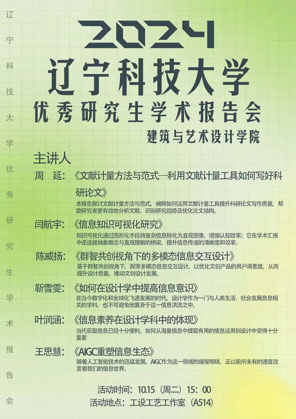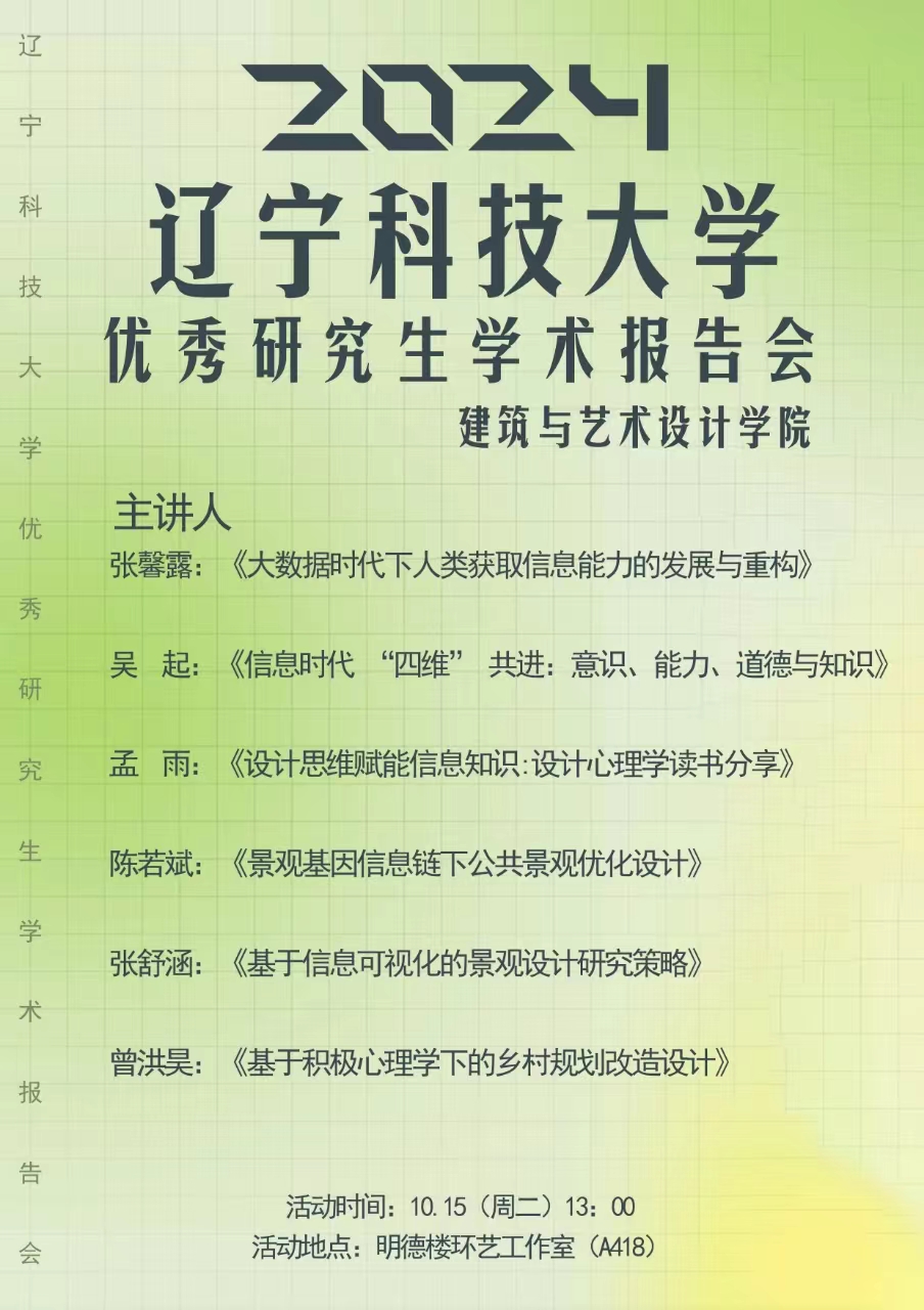 2024年遼寧科技大學建藝學院研究生學術報告會時間安排