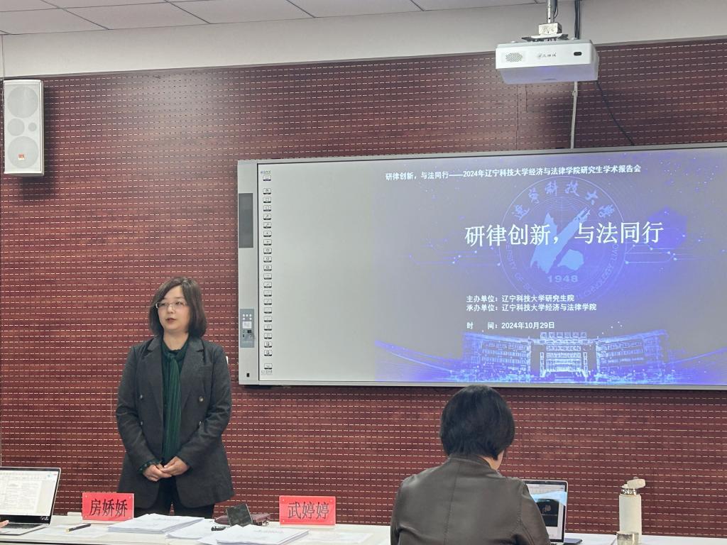 為增進研究生之間的學術交流,深化學術研究,10月29日,經法學院于博識樓A407開展“研律創新,與法同行”學術報告會。此次報告會由經法學院法碩中心主任武婷婷老師主持,研究生導師曹強、武婷婷、房嬌嬌老師擔任評委,2022、2023級全體法碩研究生參與。